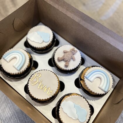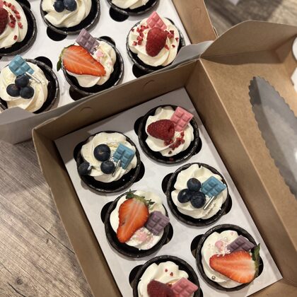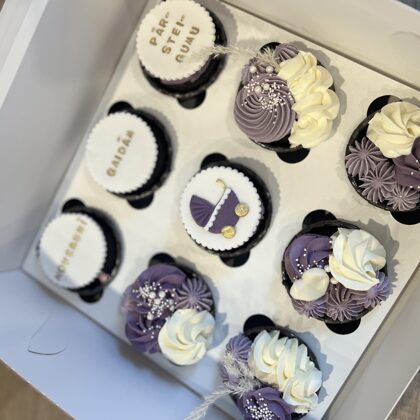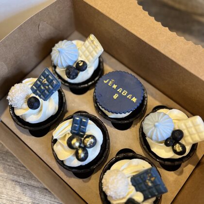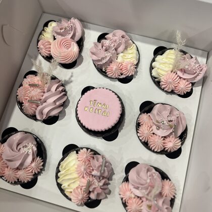 Kēksiņus varam izdekorēt ar krēmu, dzīvajiem ziediem, ogām, cepumiem vai mastikas aplīšiem