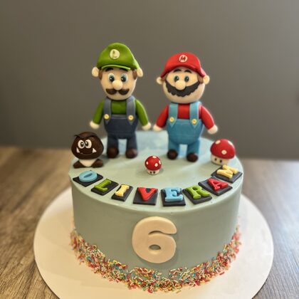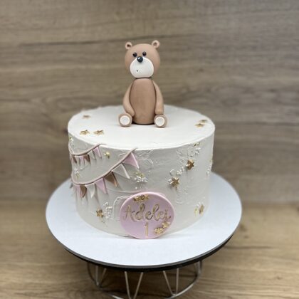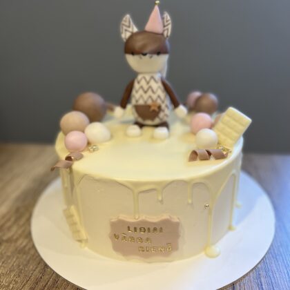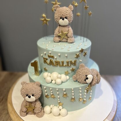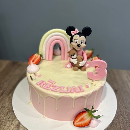 Bērnu kūkas var būt dekorētas ar mastikas figūriņām, printētiem attēliem vai standarta dizainu (bezē cepumiņi, ogas)