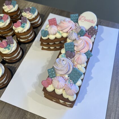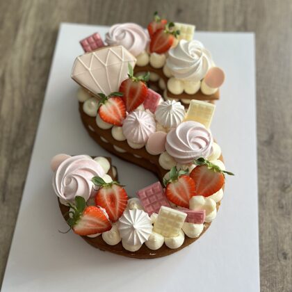 Šablona kūkas var būt dekorētas ar ogām, bezē, mini šokolādītēm, dzīvajiem ziediem, minimālām mastikas figūriņām un cepumiņiem